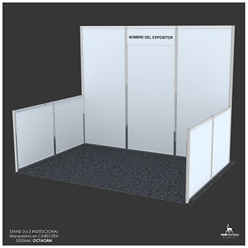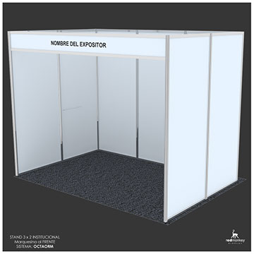 Montamos stands institucionales en medida standard para exposiciones (3m x 3m); también contamos con stands en medidas especiales.