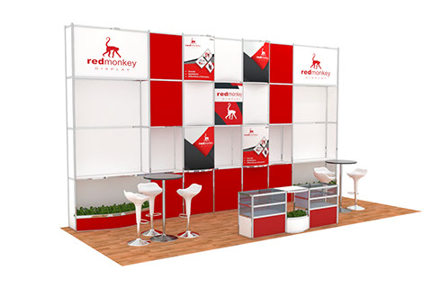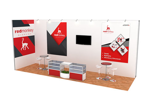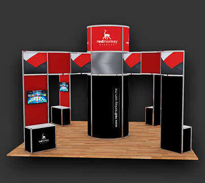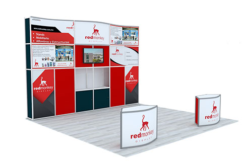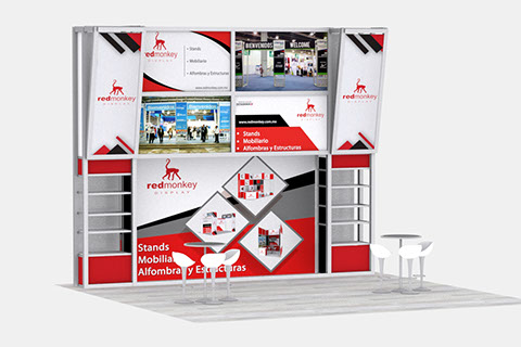 Contamos con una amplia variedad de stands pre-diseñados en diferentes medidas integrando los principales elementos: alfombra o duela, mobiliario, gráficos, exhibidores, vitrinas, etc.